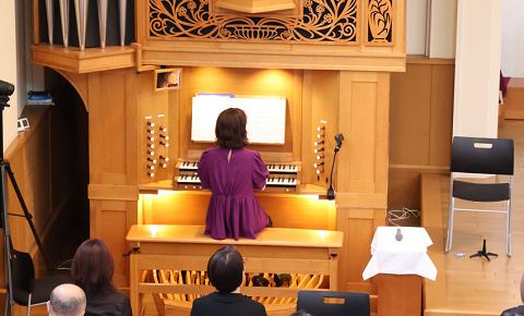 本学和泉キャンパスのチャペルにて、日本オルガニスト協会より三好加代子さん(オルガン)、畑田二千華さん(トロンボーン)をお迎えし、第157回チャペルコンサートを開催しました。