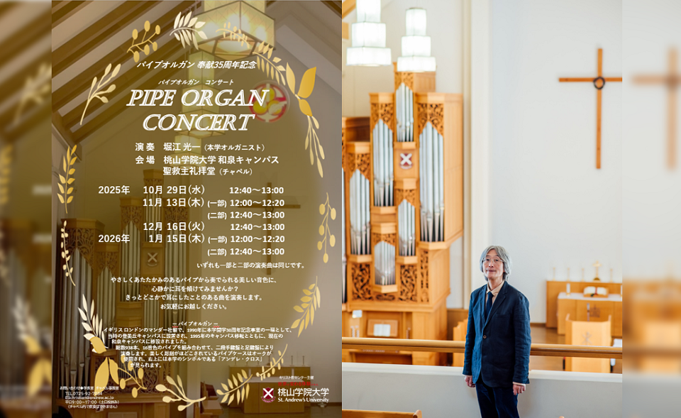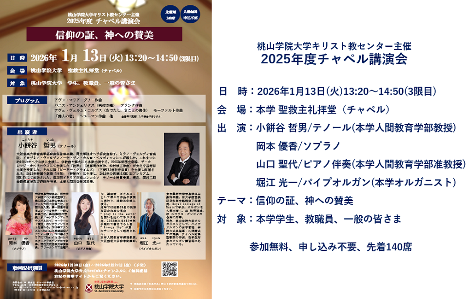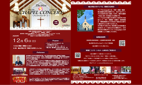 桃山学院大学では以下の内容で礼拝やコンサートを開催いたします。