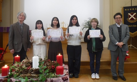 学長をはじめ学生団体代表者や経済学部長が聖書朗読をし、聖歌隊の演奏や国際ワークキャンプ学生によるキャンド ル サービ