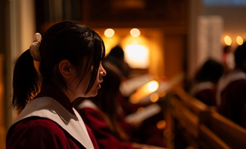 本学チャペル附属聖歌隊は、12月12日(木)に挙行されたクリスマス・キャンドルライト・サービス(燭火礼拝)に参加しました。