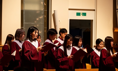 聖歌隊は、大学祭期間中に開催しますチャペルコンサートやクリスマスコンサートをはじめ、卒業式・入学式、創立記念日式典や依頼演奏な