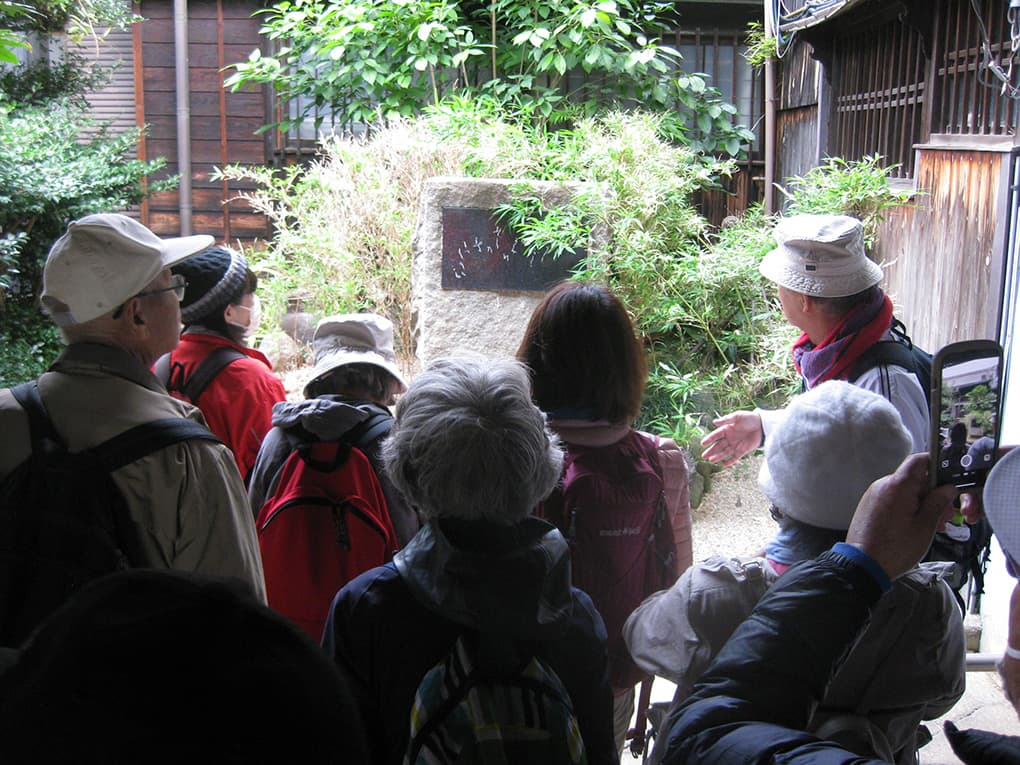 昔ながらの細い道を通り抜け、旧熊野街道を散策しました。何気なく通り過ぎていた街並みにも歴史の跡がしっかりと残されていました。救いを求めて“よみがえりの道”を歩く昔の人々に思いを馳せながら、和泉の歴史を肌で感じ学ぶことができました。