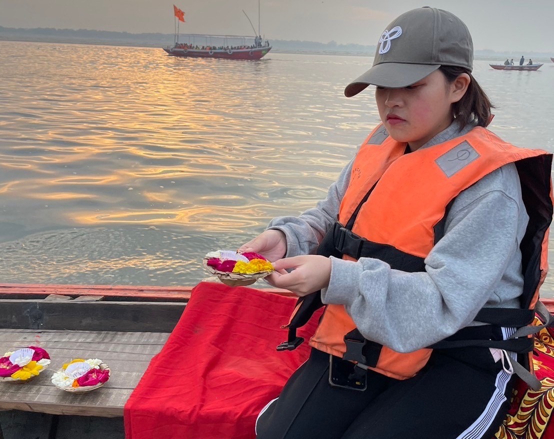 ガンジス川では沐浴をしている人やお祈りを捧げる人をたくさん見かけました。これも日本では目にしない光景で、とても印象的でした。