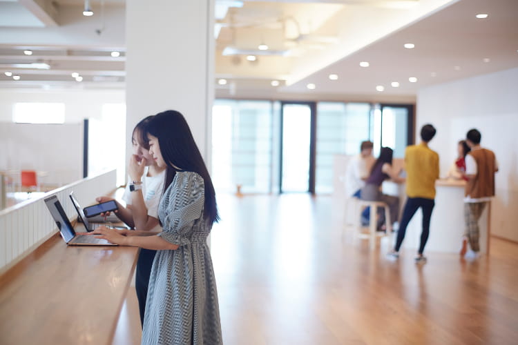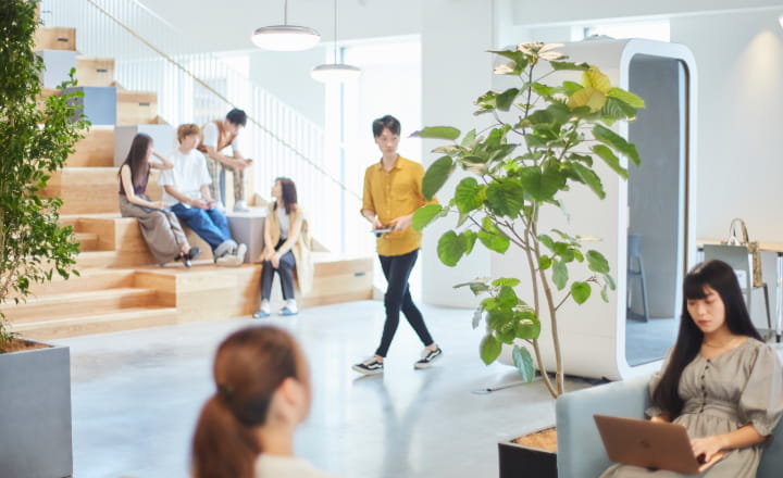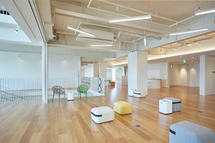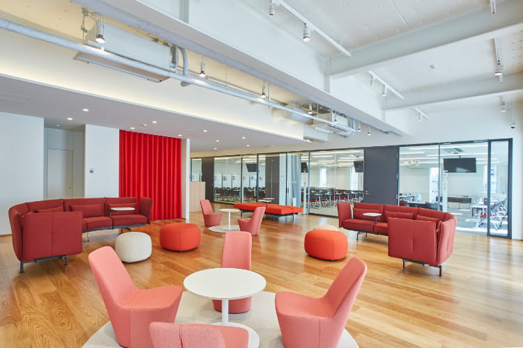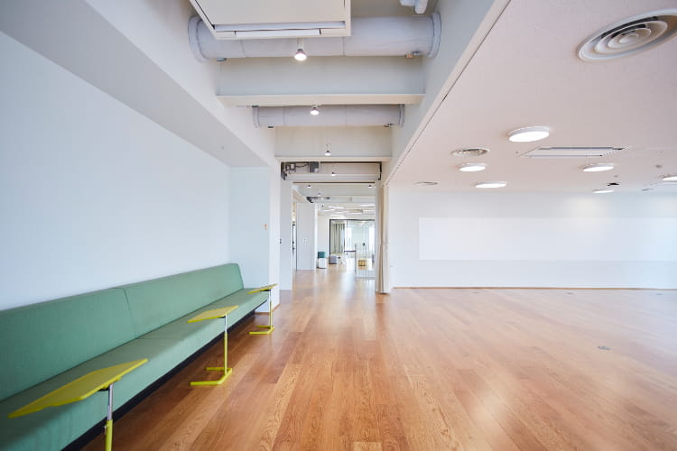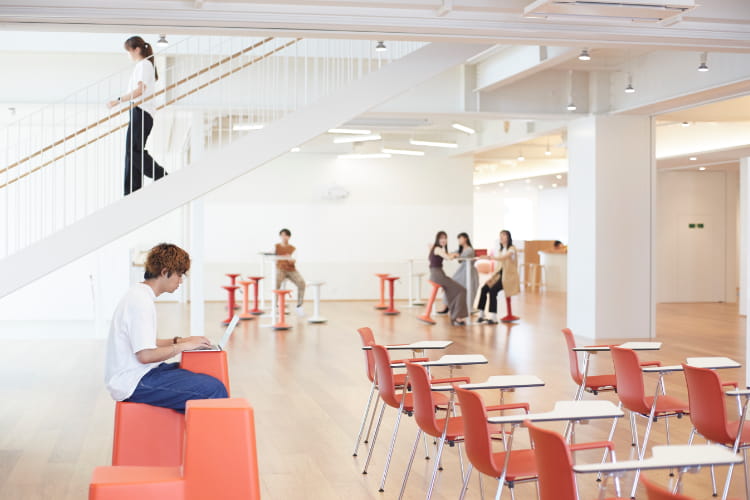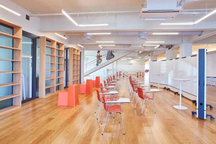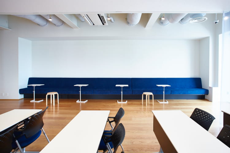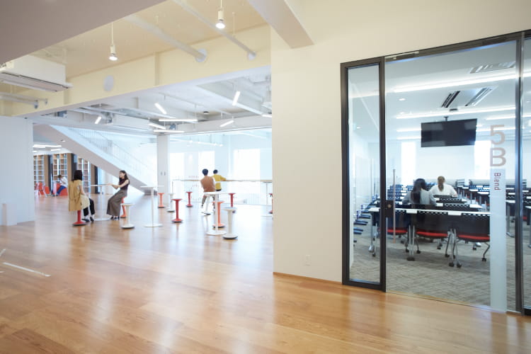 従来の教場イメージではなく、新たなビジネスを生み出すための学びの空間として、近年企業等でワーキングスペースとしても取り入れられている、交流と共創を促す最新のフロア設計となっています。