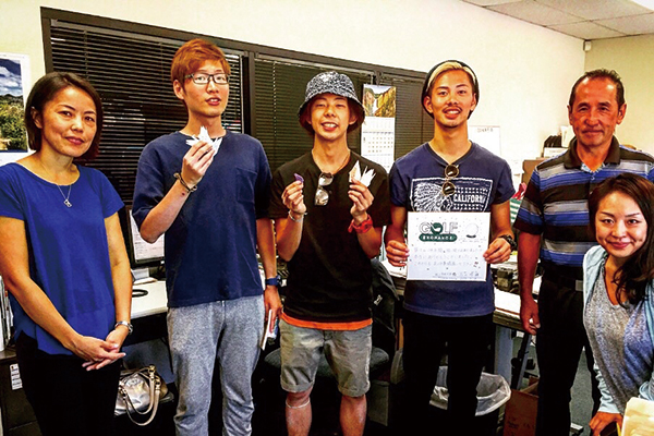 旅の準備をしていた頃、あるニュースを見た。それは、広島平和記念公園で祈りを捧げる、アメリカのオバマ大統領(当時)の姿。オバマ氏は、平和を祈る折り鶴を持参 していた。「日本人とアメリカ人がふれあう時、折り鶴がひとつのシンボル、きっかけになるのではないだろうか」。僕らは折り紙をアメリカへ持参し、出会う人々に鶴を折ってもらい、平和について語りあうことを旅のテーマに決めた。 アメリカ横断の旅の幕開けは、西海岸のサンフランシスコから。僕らはレンタカーと寝台列車で東をめざした。ニューメキシコ、テキサス、シカゴ、ニューヨーク、フロリダ、さらにメキシコ、キューバ…。声をかけるだけではなく、「いっしょに鶴を折りましょう」と英語で書いた紙をぶら下げて、行く先々の街中やお店、学校、列車の中で人々に鶴を折ってもらい、平和について語りあった。発見できたのは、平和のイメージは人それぞれだということ。戦争がないことだけが平和ではない。ある人にとっては平和が音楽だったり、またある人にとっては家族だったり。さらに「平和とはひとつの行動を起こすことだ」とメッセージをくれた人も。それは、「自分たちの行動もまた平和につながっているんだ」と、僕らの心に響いたメッセージだった。