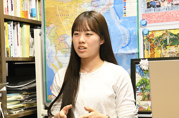 本学の経済学部は、国際的な学びに積極的に取り組む学部です。「経済・社会の仕組みを学べば将来役に立つうえ、国際交流にも力を入れている点も魅力に感じ、経済学部を選びました」(西岡さん)と、二人は国際的志向性を持って入学しました。現在私たちが所属している内山ゼミは、経済学部の中でも特に国際的な学びが特色のゼミです。内山准教授が担当する「アジア経済論」を受講した二人は「授業を通じて東南アジアに興味を持ちました。また、先輩のお話からゼミの充実さを知り、選びました」(辻本さん)、「実際に海外に行って活動を通じて学べるのが内山ゼミで、魅力を感じました」(西岡さん)と、人気の内山ゼミを選んだそうです。