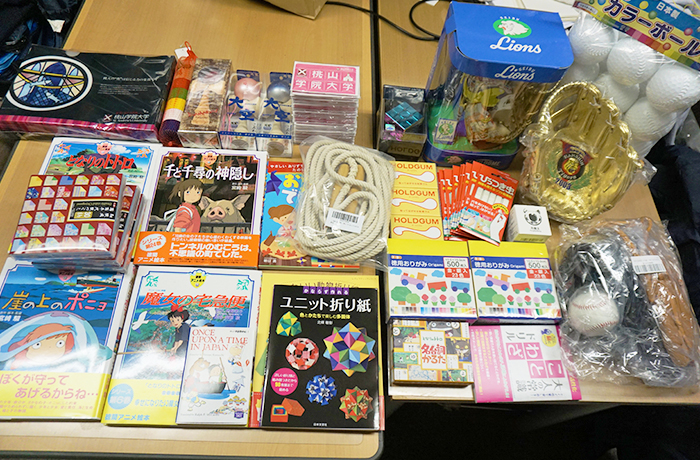 「ラオスは日本のODA(政府開発援助)で建設したナムグム・ダム等の水力発電による電力を主にタイに供給している他、銅や金などの鉱業も重要な産業です」(辻本さん)といい、ラオスは「東南アジアのバッテリー」とも呼ばれているそうです。一方、日系企業は現在約170社が進出しています。縫製業など労働集約的産業が中心で、漢方薬メーカーや自動車用のシートカバーのメーカーなどがありますが、企業進出は伸び悩んでいる状況です。「内陸国で物流コストがかかること、人口が少ない上、教育・学習環境が不十分で、労働生産性の問題が指摘されています」(西岡さん)。 二人をはじめ、内山ゼミはラオスの将来を支える人材育成のための教育支援に貢献しようと、桃山祭の模擬店の収益の半額と募金活動で集めた資金(計8万4370円)で、教育関連物資(教材や絵本、折り紙、けん玉など)やスポーツ用品(野球用のグローブやボール)を購入し、2025年2月のラオス訪問に備えました。