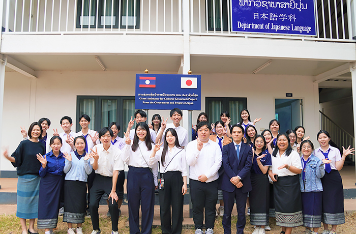 ラオス国立大学文学部日本語学科の皆さんとの記念撮影(2025年2月19日)