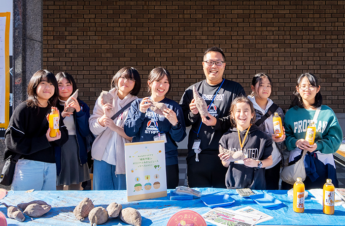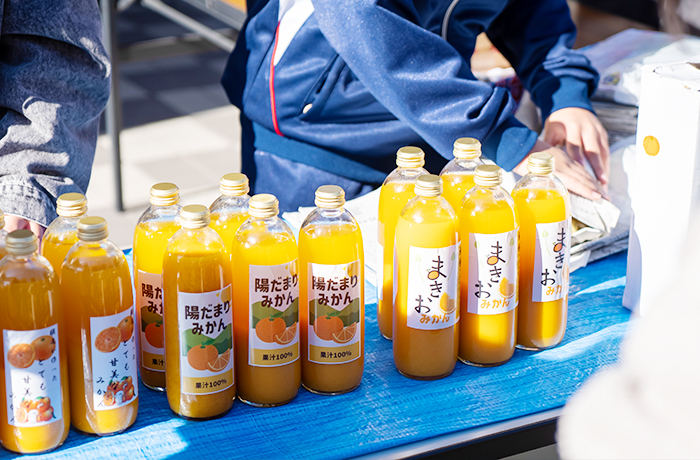 探究授業を通じて育てた野菜や、みかんジュースを販売