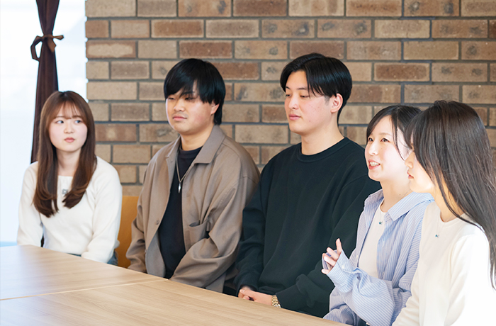 5人が経営学部を選んだ理由は、「マーケティングに興味があった」(佐野さん)、「3つのスタディエリアで、経営に関する幅広い領域の学びが可能」(吉田真央さん)、「フィールドワークを含む実践演習が魅力」(吉田凌久さん)などと少しずつ異なりますが、多様な学びの場が用意され実践的な活動に挑戦できるという「臨機応変な学び」(原田さん)が魅力だったそうです。
