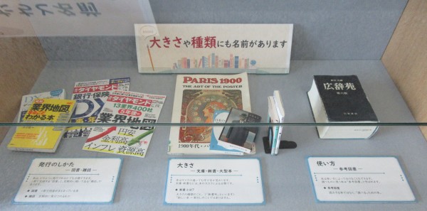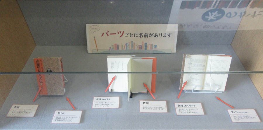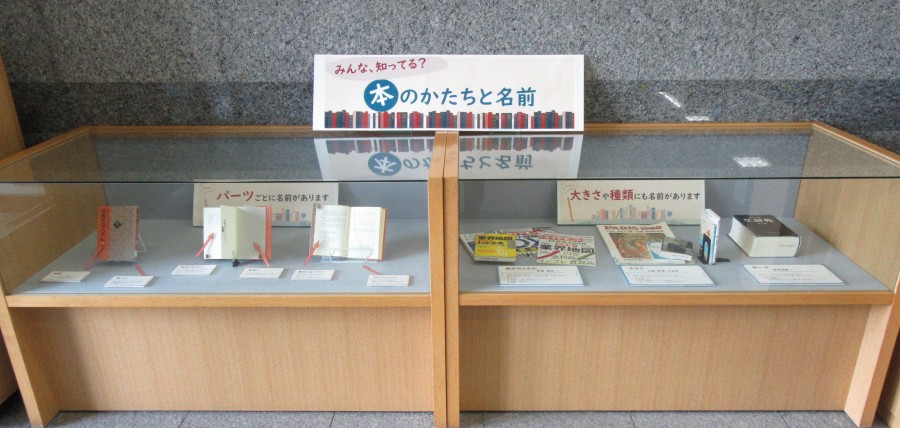 特別企画展示「みんな、知ってる?本のかたちと名前」〈図書館入り口ガラスケース展示〉