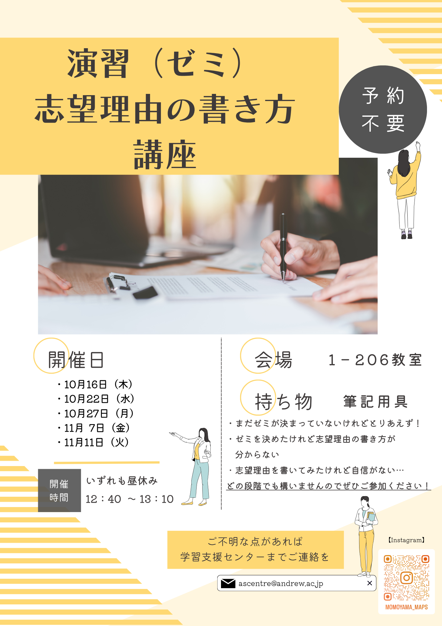 志望理由書を書いてみたけれど自信がない…など、どの段階でも構いませんので、ぜひご参加ください。