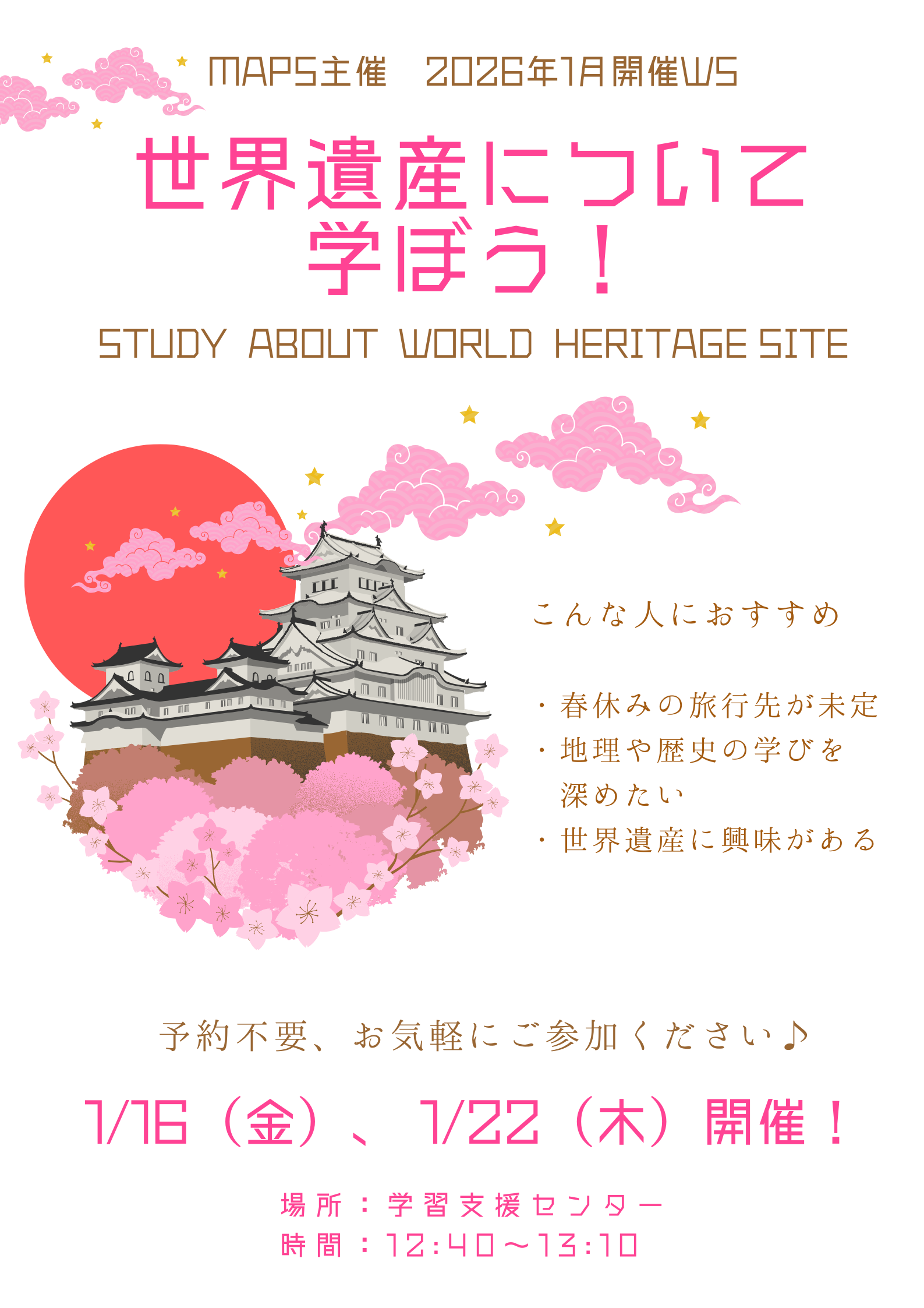 ワークショップ【世界遺産について学ぼう】を開催します!