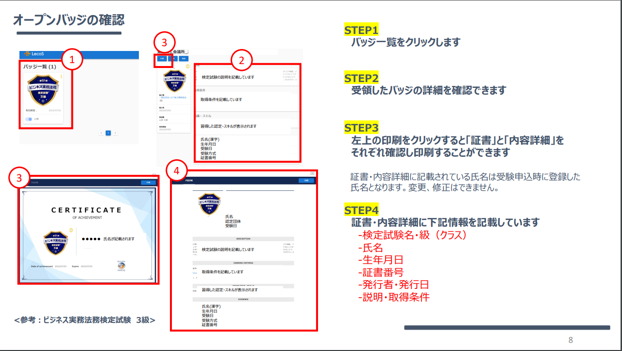 「チャレンジ!資格」奨励金制度では、協会発行の紙面の合格証だけでなく、