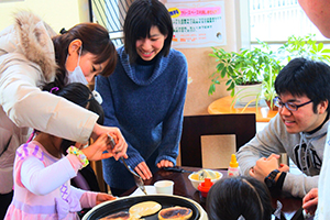 今年度5回目となる同イベントでは、地域の子どもたち20名と一緒にプラ板作り、パンケーキ作りを行い、楽しく過ごしました。また、今回は「子どもNPOセンターいずみっ子」の皆さんに、節分にちなんだ人形劇等を披露していただきました。