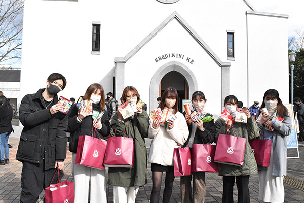 2021年11月に本学が実施した全学生に対するアンケートによると、コロナ禍前と比較して、経済的に悪化している、といった声がありました。生活に関する悩みを抱えている学生に対し、本学において「少しでも明るい話題を提供したい」と支援について検討していたところ、本学同窓会より後輩学生に対するご支援の申し出があり、クリスマスの時期にあわせて今回の取り組みが実現しました。