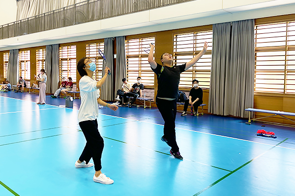 シャトルを捕えようと構える留学生の様子