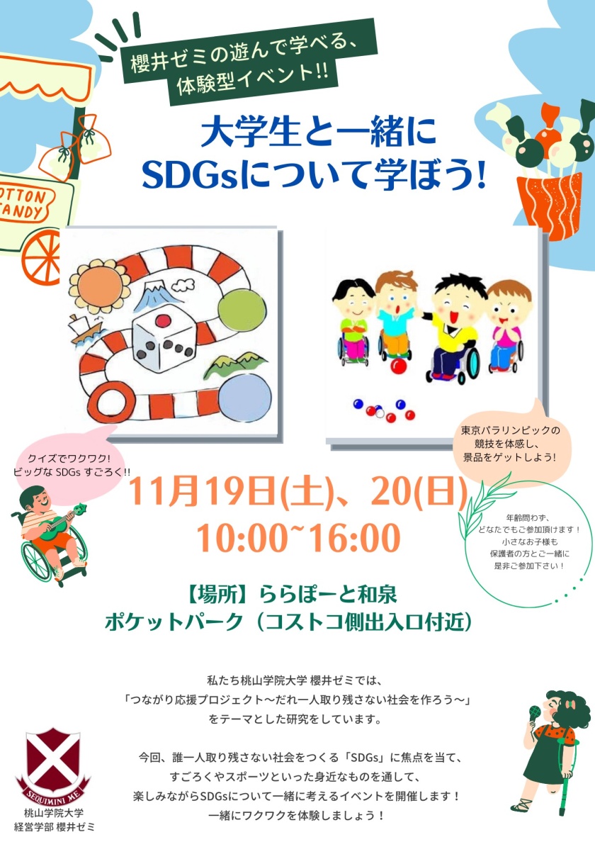 経営学部の櫻井ゼミでは、「つながり応援プロジェクト~だれ一人取り残さない社会を作ろう~」をテーマとした研究を行っています。
