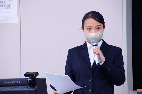 角谷嘉則 副学長(経済学部教授)による司会進行の様子
