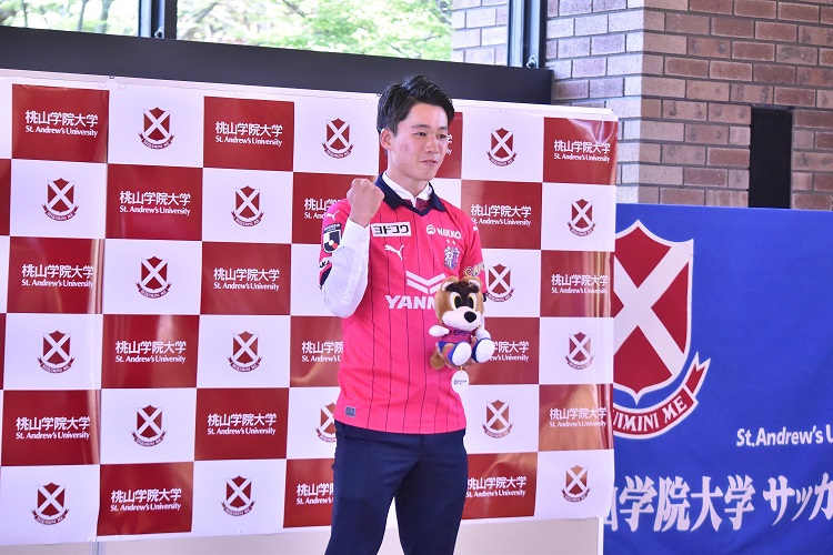 体育会サッカー部の奥田勇斗選手が記者会見を行いました