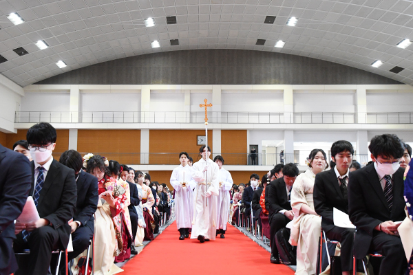 皆様は、桃山学院大学での勉学・研究・課外活動・人々との出会いを通して、このローマの信徒への手紙に通じる、「生き抜く力」を身につけられました。コロナウイルス、世界各地の災害・紛争のように、何が起こるかわからないこの世界の中で「希望」を見失わずに「生きる力」、「生き抜く力」を身に付けられたのです。これから皆様が上る新しいステージにおいても、きっといろいろなことがあるでしょう。山があれば谷もあります。いかなる時も、不安定な中でも、揺れ動く時も、桃山学院大で身に着けた「生きる力」を使って、「希望」を見失うことなく、苦難を乗り越えていってください。