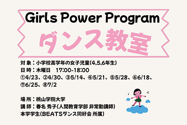 【Girls Power Program】「ダンス教室(4月~7月)」を開催します