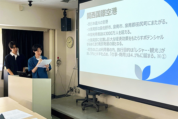本学経済学部の吉弘ゼミ生(3年次2名)は、大阪南部の経済発展をテーマに、観光データ等の個票データ分析からの政策インプリケーションを報告しました。また、討論、司会などの役割も務めました。