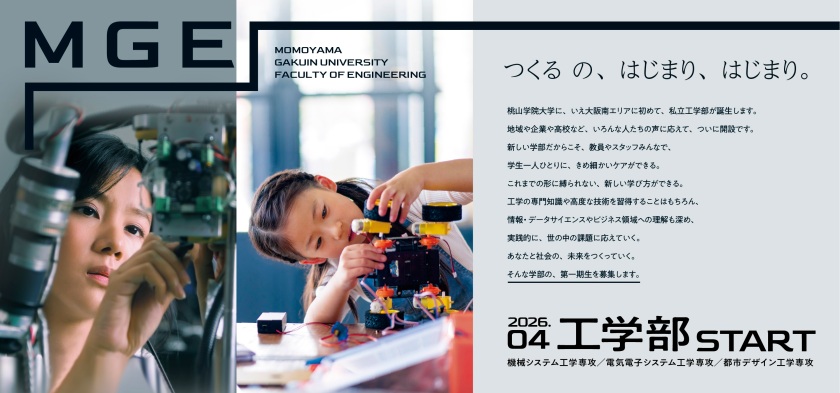 この度、桃山学院大学(大阪府和泉市)は、2026年4月に「工学部(工学科・入学定員160名)」を新設することが、10月28日に文部科学大臣より正式に認可されました。