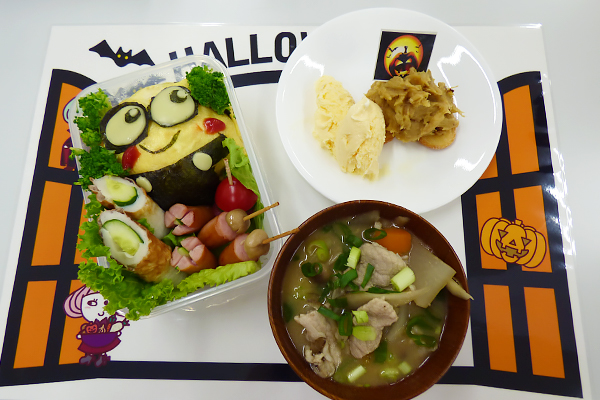 10月30日(木)、本学和泉キャンパスの家政実習室(介護実習棟内)において、キャンパスコミュニティー形成支援プログラム「第2回ひとり暮らしの料理教室」を開催しました。今回は「大切な人に、自分のために手作り弁当を作ろう」をテーマに、キャラクター弁当と豚汁、焼き芋で作るスイートポテトづくりに挑戦しました。