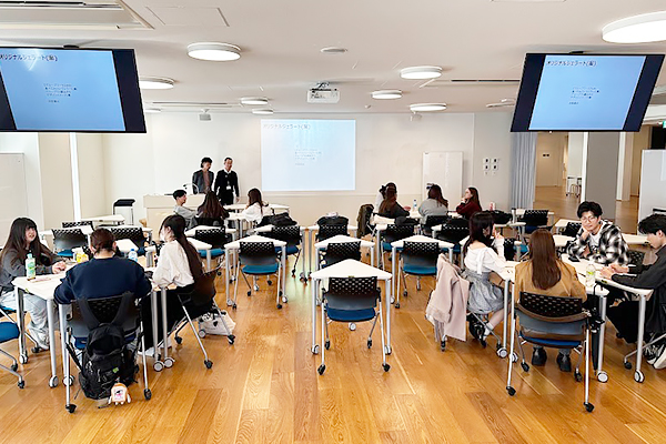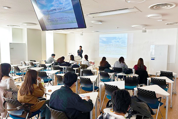 初回は株式会社フォレストバンクの代表取締役社長 小林亮氏より事業内容の紹介があり、これまでの取り組みや具体的なアップサイクル商品、サステナビリティへの姿勢について学びました。その後は個人ワークを経て、4チームに分かれチーム別のワークを実施。このワークでは「自分が食べたいジェラートではなく、“売れる”視点で考えること」という条件が加えられました。学生たちは自由に発想しながらも、消費者のニーズや市場性を意識してアイデアをまとめ、商売を体験的に学ぶ貴重な機会となりました。