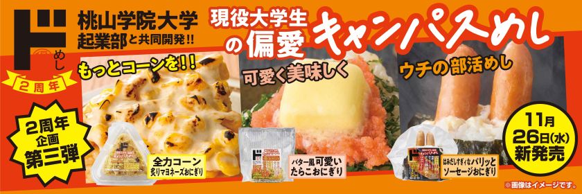 11月26日(水)、ドン・キホーテと本学起業部による産学協働商品「偏愛めし」おにぎり3商品が発売されました。同商品は、ドン・キホーテの人気商品シリーズ「偏愛めし」初の産学協働開発商品となり、全国の系列店でも同日に発売されます。