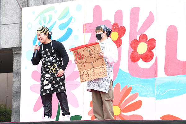 21日(金)には吉本興業の「cacao」さん、「例えば炎」さん、「やまぐちたけし」さんによるお笑いイベントや、大阪プロレスによるシングルマッチ、ちびっ子プロレス教室、22日(土)には俳優の水沢 林太郎さんによるトークショー、23日(日)の後夜祭では盛大に花火が打ち上げられました。