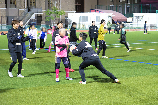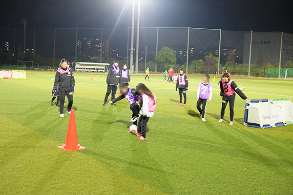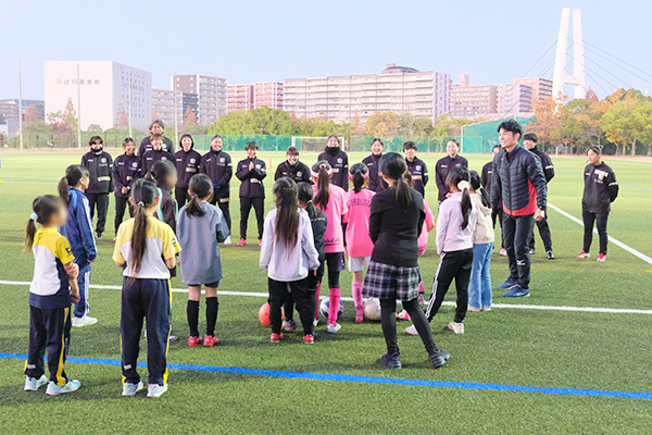 当日は女子小学生13名の参加があり、和泉テクノFCの選手によるハイレベルなデモンストレーションに会場は大盛り上がり!終始笑顔があふれるあたたかい雰囲気の中、一生懸命にボールを追いかけました。参加した子どもたちからは「もっとサッカーがしたい!」「次も絶対来たい!」といったうれしい感想が多く寄せられました。