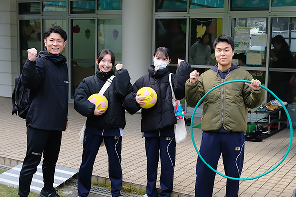 ◇年齢の異なる子どもたちと触れ合う貴重な体験をさせていただきました。自分たちで計画した運動遊びを、実際に子どもたちの前で行うのは初めてでとても緊張しましたが、活動を通じて多くの学びを得ることができました。