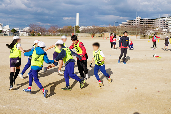 12月4日(木)、本学スポーツ教育センターの杉秋成講師と本学サッカー部員6名が、和泉市立鶴山台北小学校にて体育の出張授業を行いました。この出張授業は、杉講師が和泉市校長会にて本学のスポーツを通じた地域連携活動の取り組みを紹介させていただいたご縁から実現する運びとなりました。