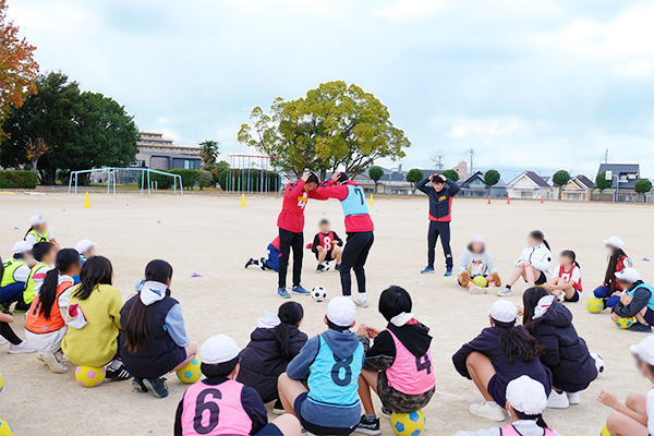 授業が終わると、子どもたちからは「また来てほしい!」、「楽しかった!」という感想が聞かれ、部員たちと「またサッカーしようね!」とハイタッチする姿も見られました。