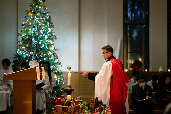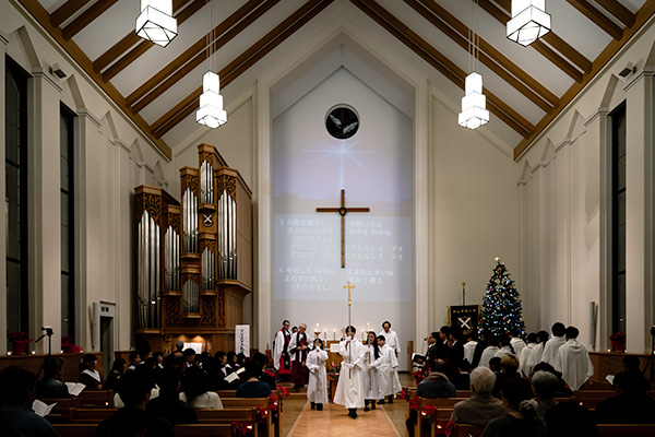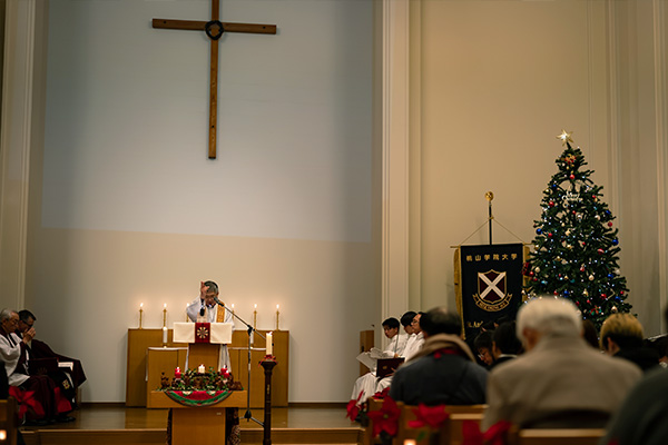 12月11日(木)、本学和泉キャンパスの聖救主礼拝堂(チャペル)において、クリスマス礼拝(キャンドルライトサービス)を行いました。
