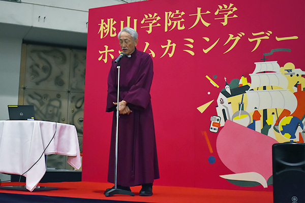 当日は、「おはよう朝日です」でおなじみの川﨑美千江さん(本学卒業生)による司会のもと、開会のお祈り、中野瑞彦 学長による開会挨拶で始まりました。