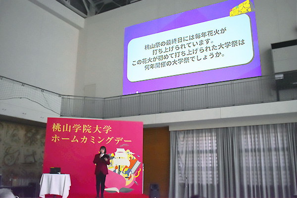その後、今年の目玉企画である「オール卒業生感謝祭」では、テレビ番組さながらの演出でクイズ大会が行われ、大型スクリーンに映し出される映像や音響を駆使した演出で臨場感あふれるイベントとなりました。キャンパスの歴史や思い出にまつわる問題が出題され、卒業生同士で懐かしい記憶を語り合う場面も見られ、世代を超えた交流が生まれるひとときになりました。