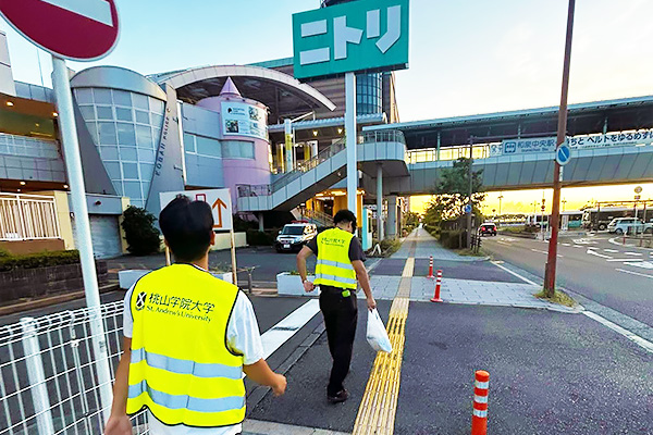 人間教育学部科目「社会貢献活動A・B」(担当:木村佐枝子教授、柴田真裕講師)を受講する学生(3年次16名、4年次1名)が、和泉市内の通学路における防犯パトロール活動(実施期間:5月~10月)を行いました。