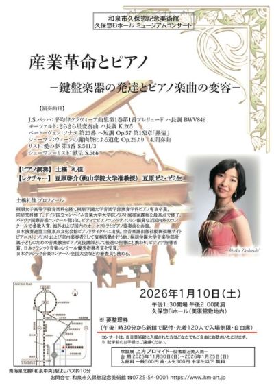 経済学部豆原ゼミが、本学学生および教職員の芸術・文化に対する理解を深め、地域文化への関心を育むことを目的に、様々な連携事業を行っている和泉市久保惣記念美術館にピアニストをお迎えし、レクチャーコンサートを開催します。
