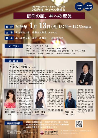 2025年度チャペル講演会を以下のとおり開催いたします。