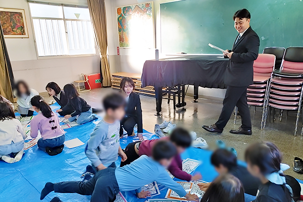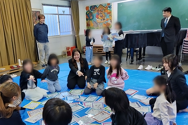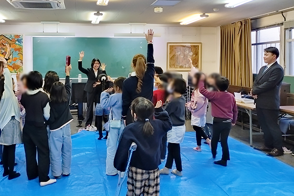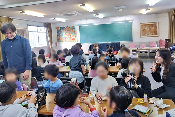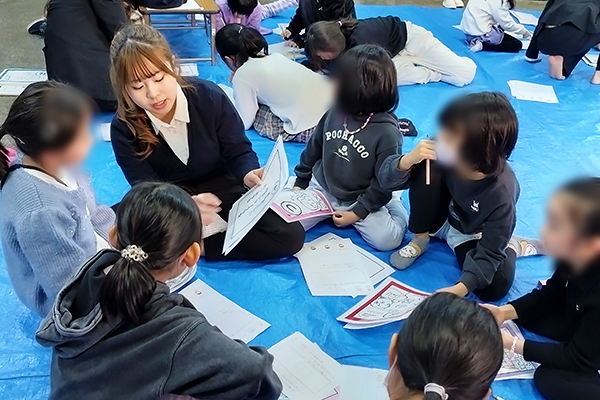 12月26日(金)、人間教育学部の八木利津子ゼミ3年次生4名が同心児童館(京都市)において、小学生約70名を対象に冬休みの健康で安全な過ごし方を学ぶ取り組みを行いました。
