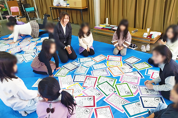 ジャンボカルタを用いた学習の様子(岸本さんグループ)
