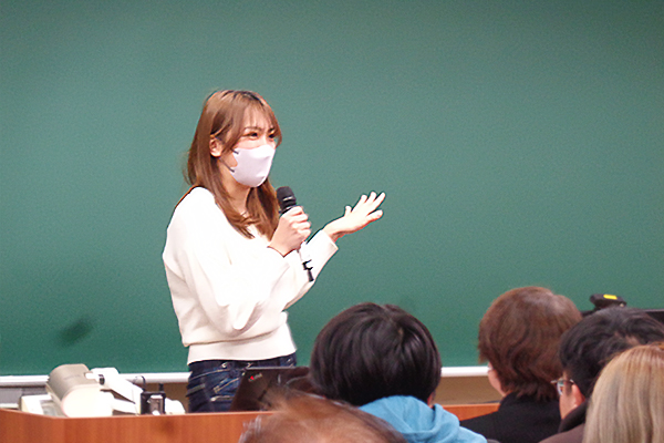 ・私は公務員として働きたいと考えていて、公務員保育士に興味を持っていました。今回の授業では、公務員の待遇や試験に関する具体的な情報を、普段の大学の座学では得られない視点から伺うことができ、とても参考になりました。実際に公務員として働いている卒業生のお話を直接聞けたことは、将来を考えるうえで貴重な機会となりました。