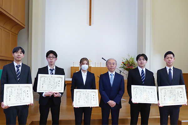 本学では毎年度、課外活動において特に優秀な成績、ならびに学術またはその他の活動において著しく全学の模範となるような実績を有する学生を表彰しています。