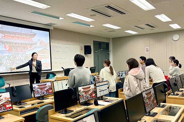 Plus English は、「英語を使えるようになりたい!」と考える学生のためのプログラムです。外国語教育センターが実施するこのプログラムは、2025年度秋学期からスタート、各学部の専門領域を学びながら英語力も強化できることを特徴とし、英語学習者同士の仲間づくりをはじめ、集中講座の開講や各種英語検定の受験料補助など、さまざまなサポートを行っています。