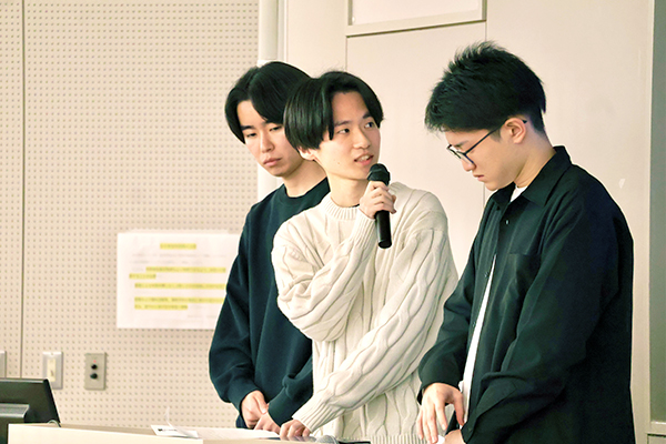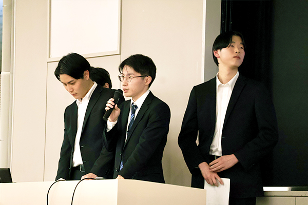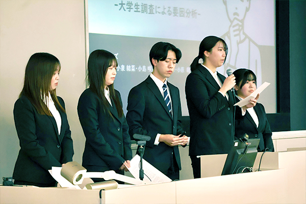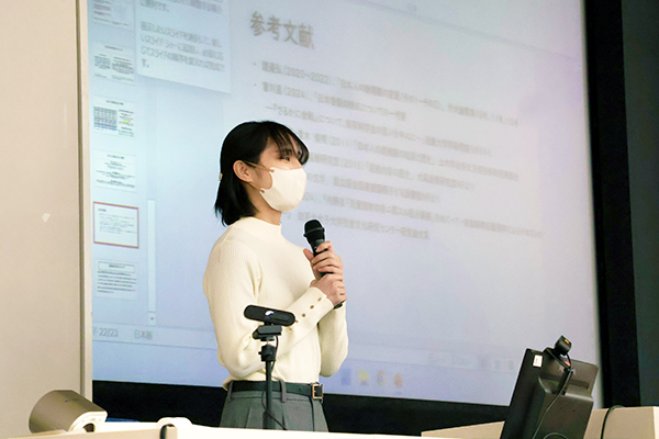 エントリーした50チームの中から、12月13日(土)に行われた予選を勝ち抜いた8チームが今回の本選に臨みました。各チームの学生は、ゼミなどで進めてきた研究成果をそれぞれ10分間ずつ披露し、発表終了後は4名の審査員による質疑応答・講評がありました。