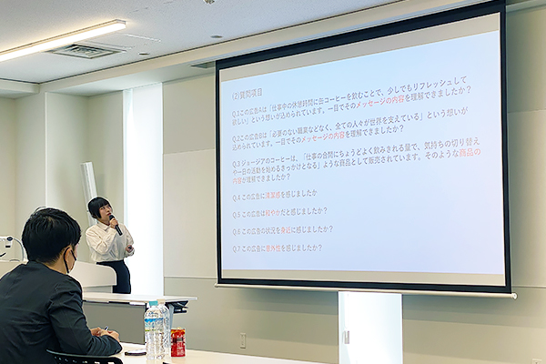 広告効果や推し活消費、大型イベント参加要因などをテーマに、アンケート調査を通じて消費者行動を分析しました。データに基づき、実務に活かせる示唆を導く研究が特徴でした。