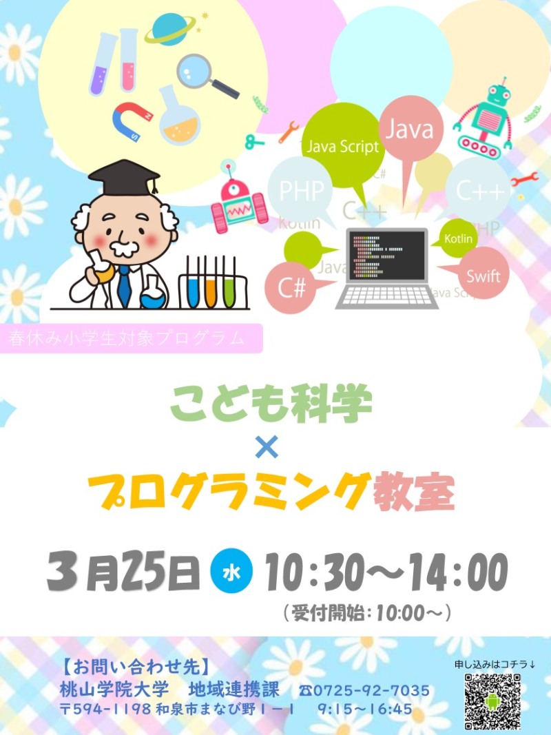 3月25日(水)、春休み小学生対象イベント「こども科学とプログラミング体験」を開催します。